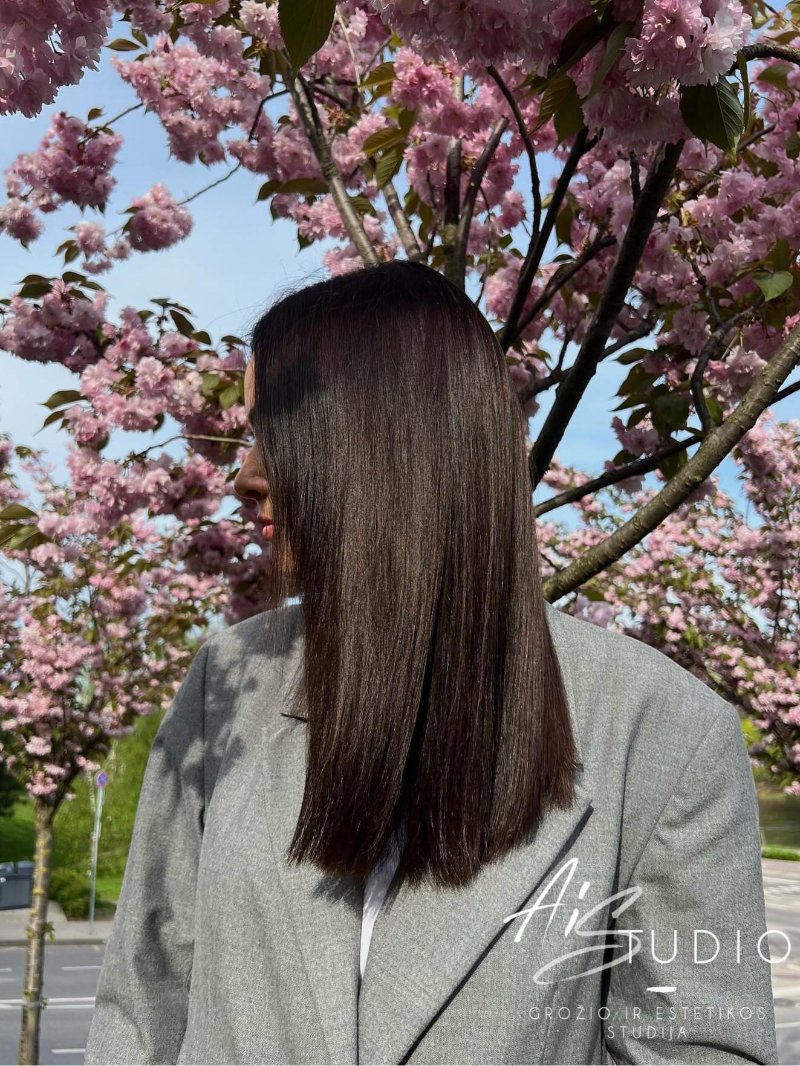 Be tiesinimo procedūrų, taip pat atlieku plaukų kirpimą karštomis žirklėmis, kuris padeda atkurti plaukų sveikatą ir grožį.